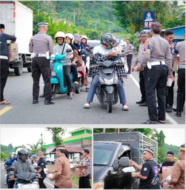 Dalam kolaborasi yang terjalin erat, petugas PJR dan anggota Komunitas PDM dengan ramah menghentikan pengendara baik kendaraan roda dua maupun roda empat untuk memberikan paket takjil berisi makanan dan minuman siap saji.