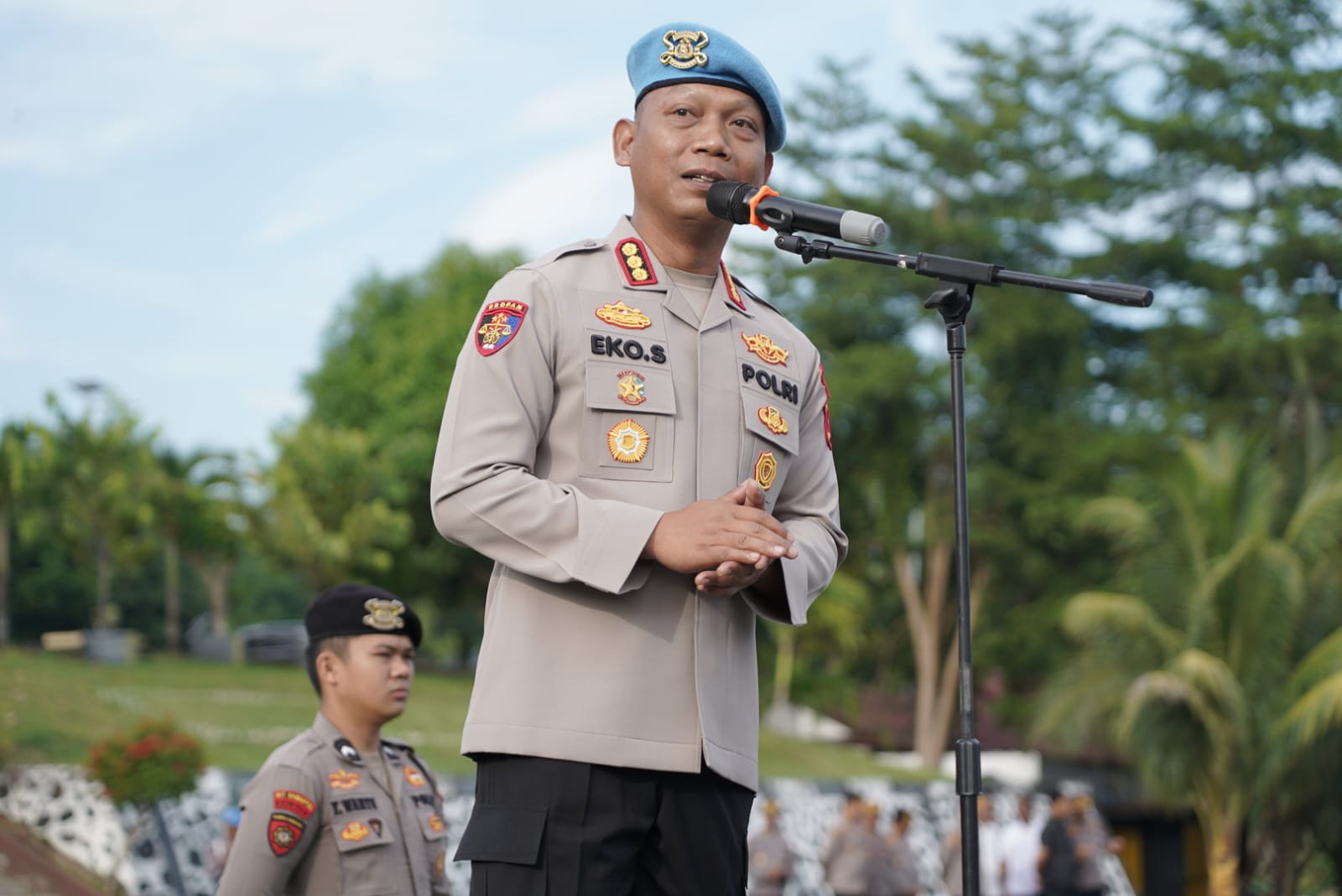 Dalam arahannya, Kombes Pol Eko Suroso mengingatkan agar seluruh personel menghindari gaya hidup hedonis dan tidak memamerkannya di media sosial.