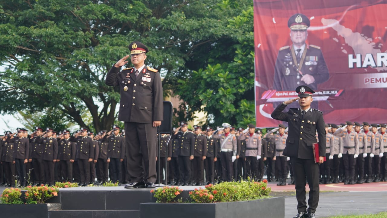 Pelaksanaan upacara ini, dipimpin oleh Wakapolda Sulbar, Brigjen Pol. Hari Santoso, yang diikuti oleh seluruh jajaran pejabat utama, personel anggota Polri, serta PNS Polri.