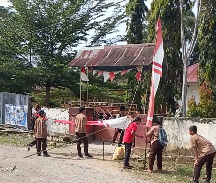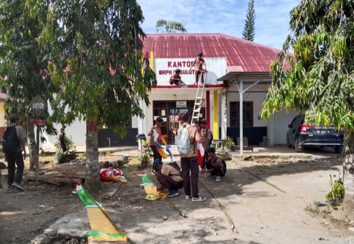 Semarak HUT RI ke-80, SMPN 01 Bulutaba Dirikan Umbul-umbul