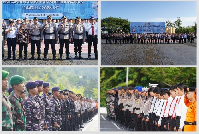 Polda Sulbar – Sebagai upaya menjaga keamanan dan kenyamanan ibadah selama bulan suci Ramadhan 1447 H, Kepolisian Daerah Sulawesi Barat menggandeng berbagai instansi terkait menggelar apel siaga Kamtibmas, Jumat (27/2/26) di Lapangan Tribrata Mapolda.