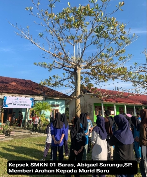 Pada kesempatan ini, Kepala Sekolah SMKN 01 Baras Memberikan arahan kepada murid baru,