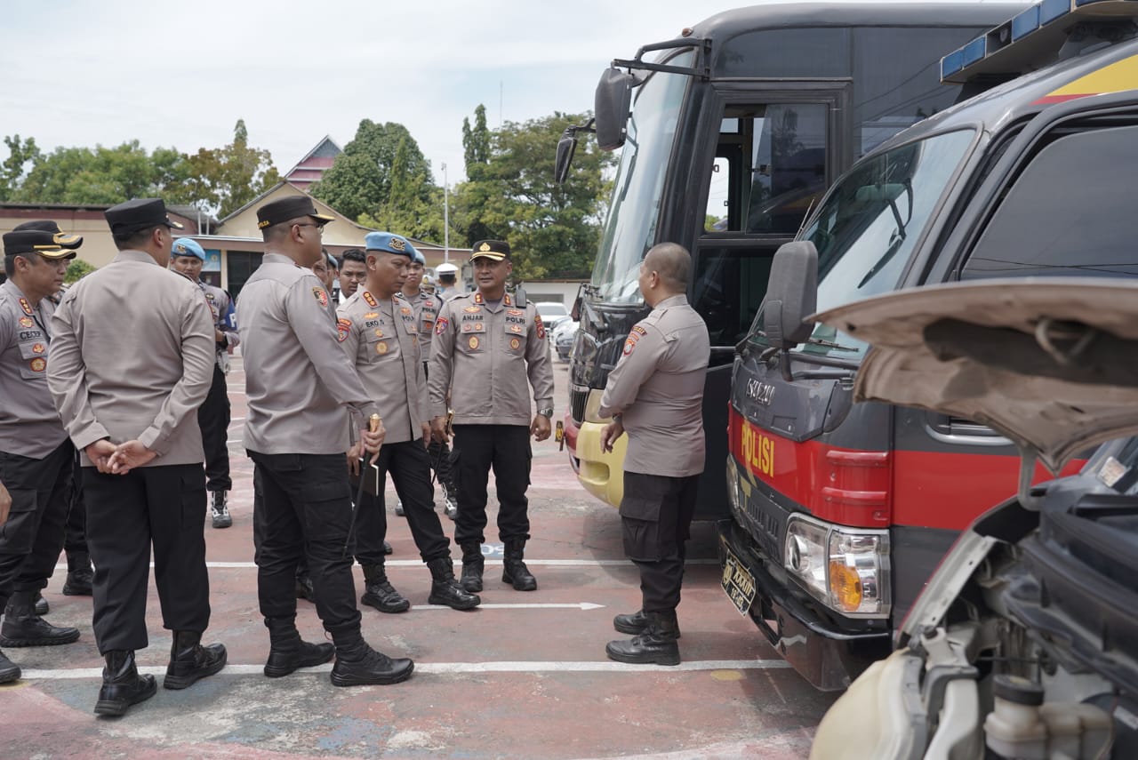 Pengecekan ini meliputi kendaraan roda dua maupun roda empat, termasuk mobil patroli, kendaraan operasional dan sepeda motor Bhabinkamtibmas, guna memastikan armada tersebut selalu dalam kondisi prima dan siap operasional 24 jam.