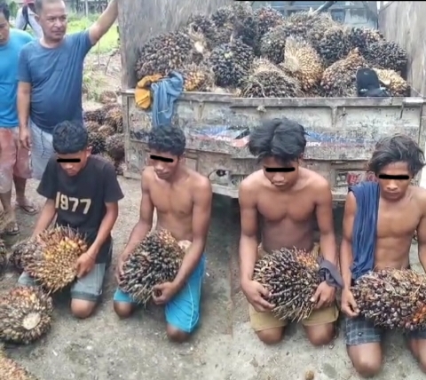 “Keempat pelaku pencurian buah kelapa sawit yang berinisial DG, RN, RA, dan MA berhasil diamankan oleh warga Desa Kastabuana tanpa perlawanan. Setelah dilakukan pemeriksaan, para pelaku mengakui perbuatan mereka dan menunjukkan bukti bahwa buah curian tersebut telah dijual. Kami akan terus meningkatkan patroli dan kerja sama dengan masyarakat untuk mencegah tindak pidana pencurian di wilayah hukum kami.” Ungkap AIPTU Johannes Nababan.