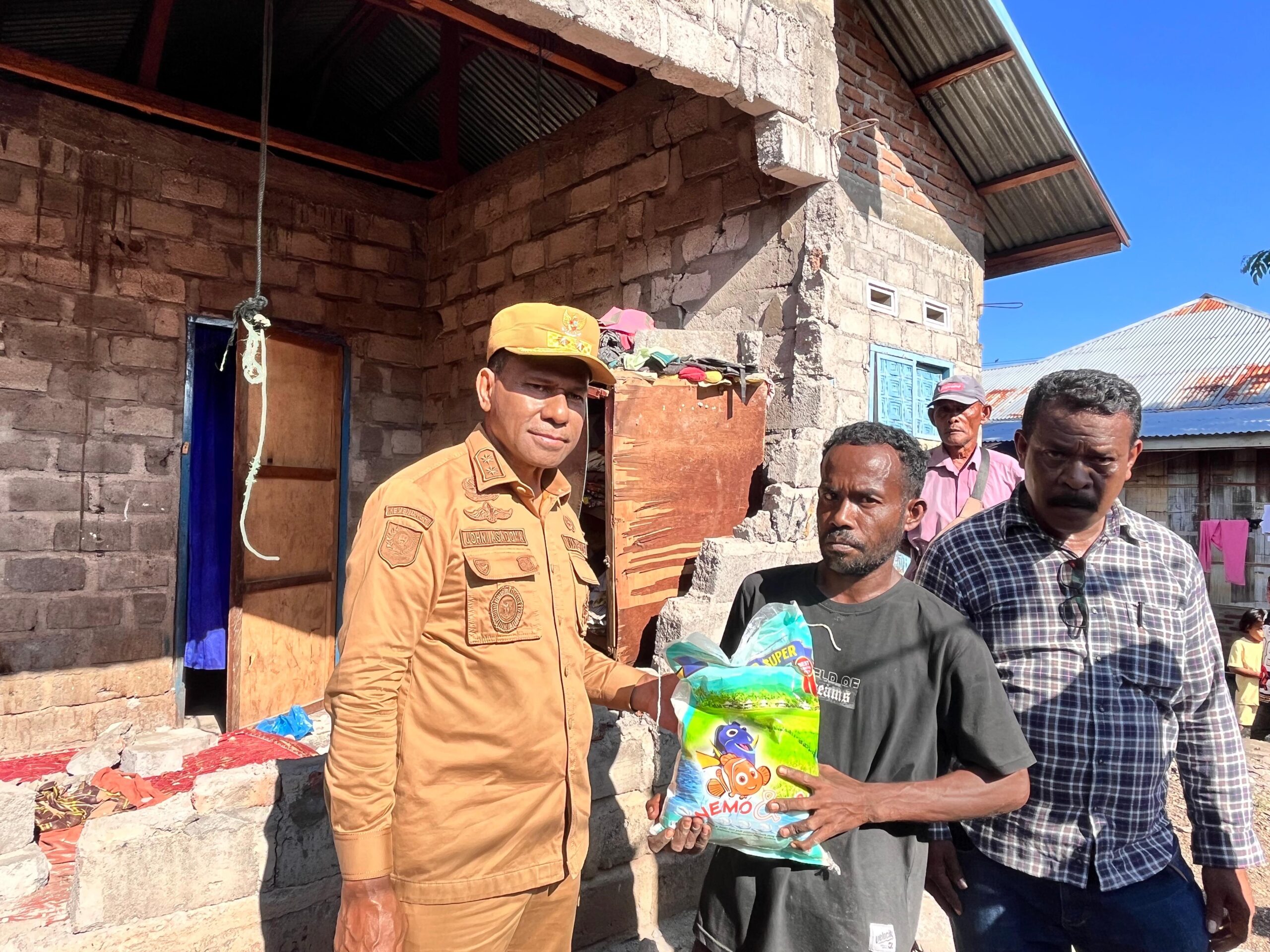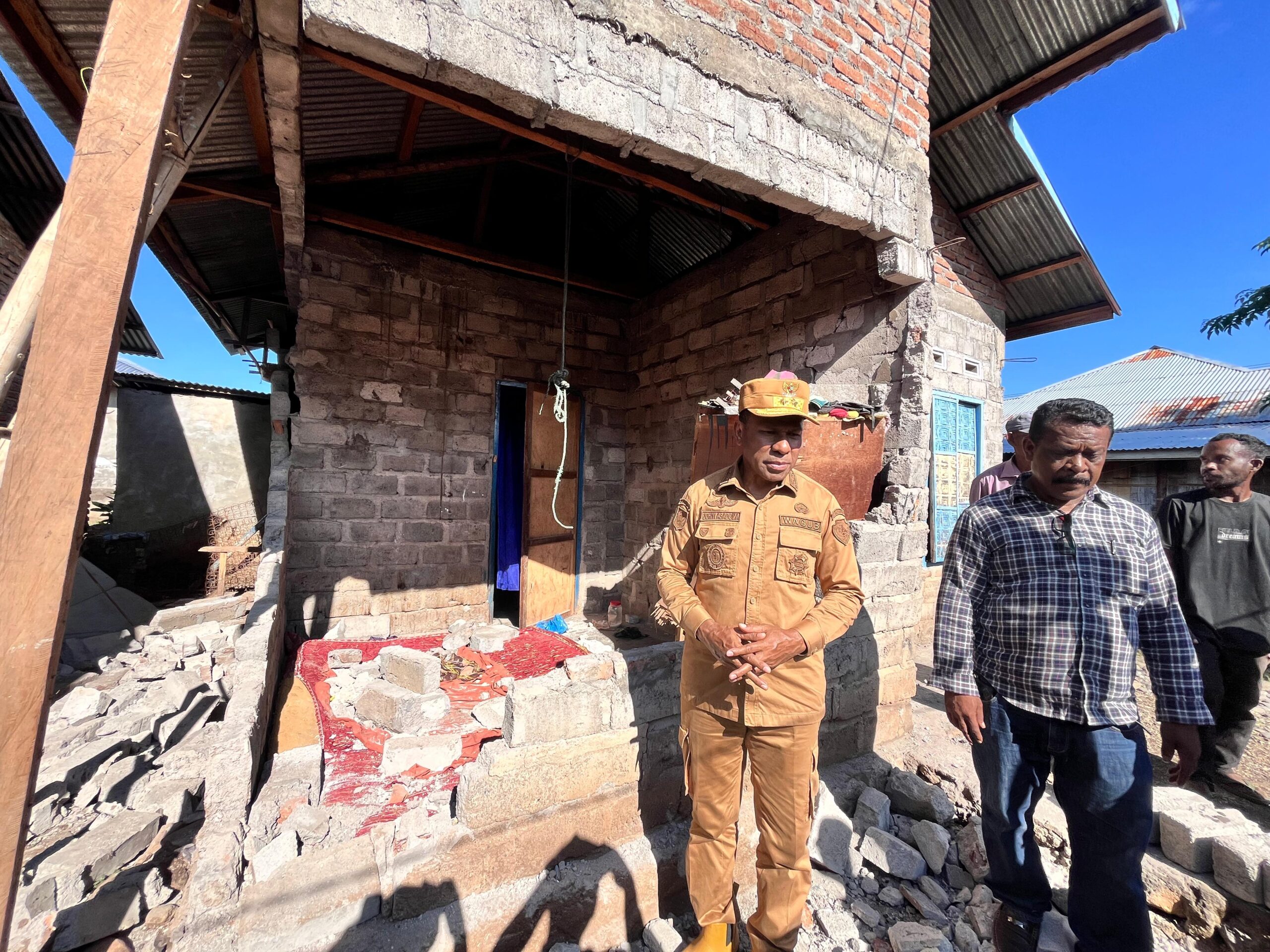 Dalam kunjungannya, Wagub Johni Asadoma meninjau langsung kondisi rumah yang retak dan memastikan penyaluran bantuan berjalan lancar.