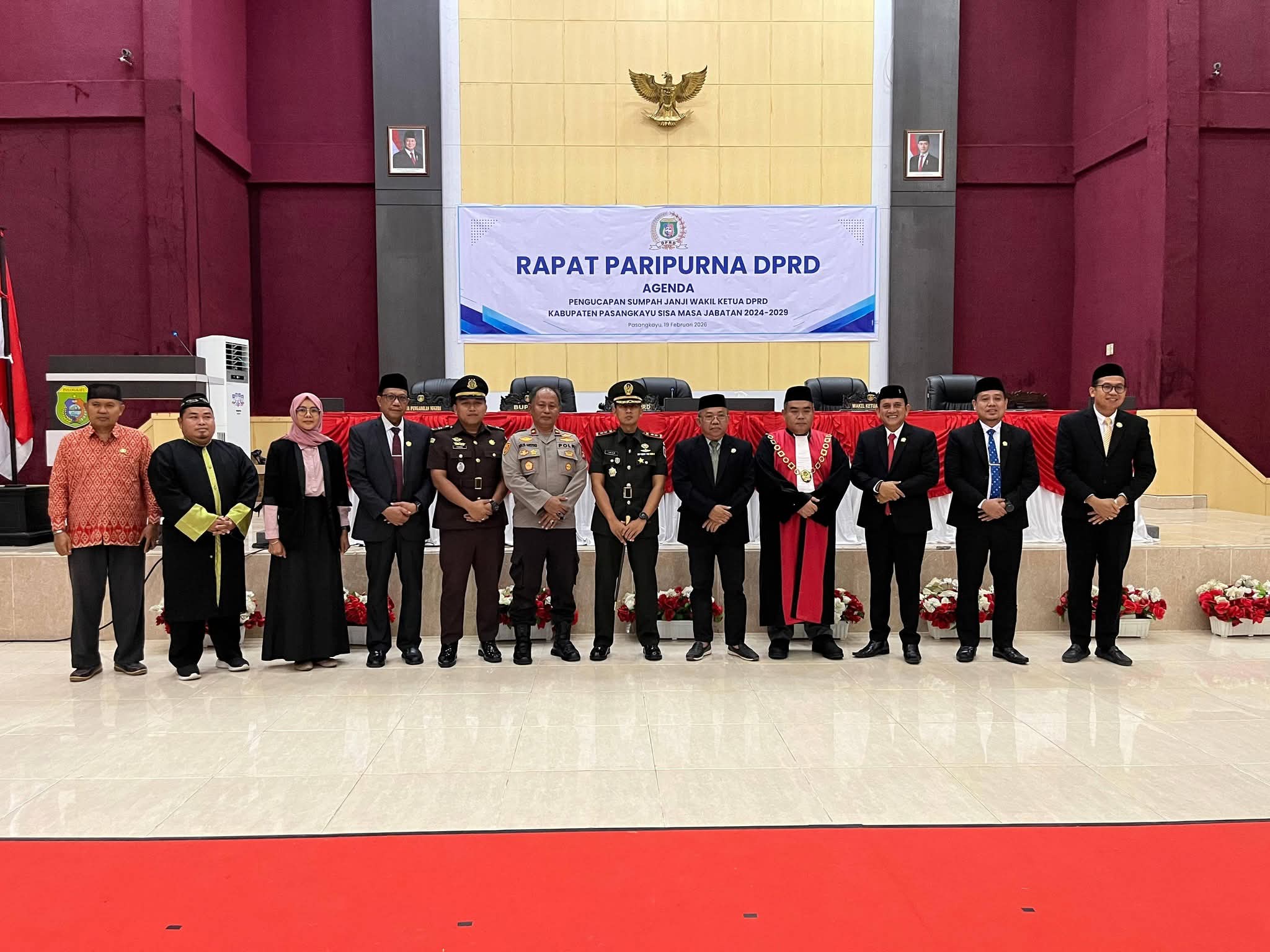 Polres Pasangkayu – Wakapolres Pasangkayu, Kompol Agussalim Arsyad, menghadiri Sidang Paripurna DPRD dengan agenda Pengucapan Sumpah/Janji Wakil Ketua DPRD Kabupaten Pasangkayu sisa masa jabatan 2024–2029, yang digelar pada Kamis, 19 Februari 2026, pukul 10.00 WITA, bertempat di Gedung DPRD Kabupaten Pasangkayu.