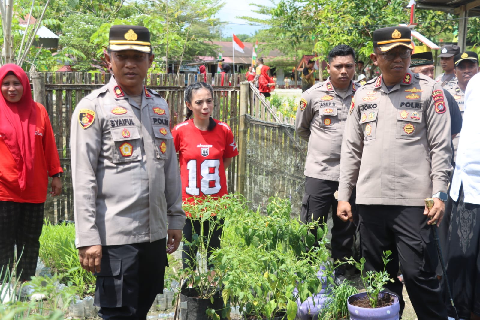 Polres Pasangkayu – Dalam semangat menyambut Hari Ulang Tahun ke-80 Republik Indonesia, Polres Pasangkayu menunjukkan kepedulian terhadap lingkungan dan kemandirian pangan masyarakat. Jumat (15/8/2025) sekitar pukul 13.20 Wita, Kapolres Pasangkayu AKBP Joko Kusumadinata, S.H., S.I.K., bersama jajaran Pejabat Utama (PJU) Polres Pasangkayu melakukan peninjauan kebersihan dan pemanfaatan pekarangan di Desa Motu, Kecamatan Baras, Kabupaten Pasangkayu.